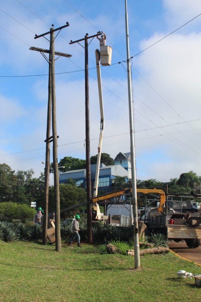 Operarios del sector de Energía Eléctrica realizaron tareas de poda de arboles que obstruyen el buen despliegue del tendido de cables y cambio de postes.