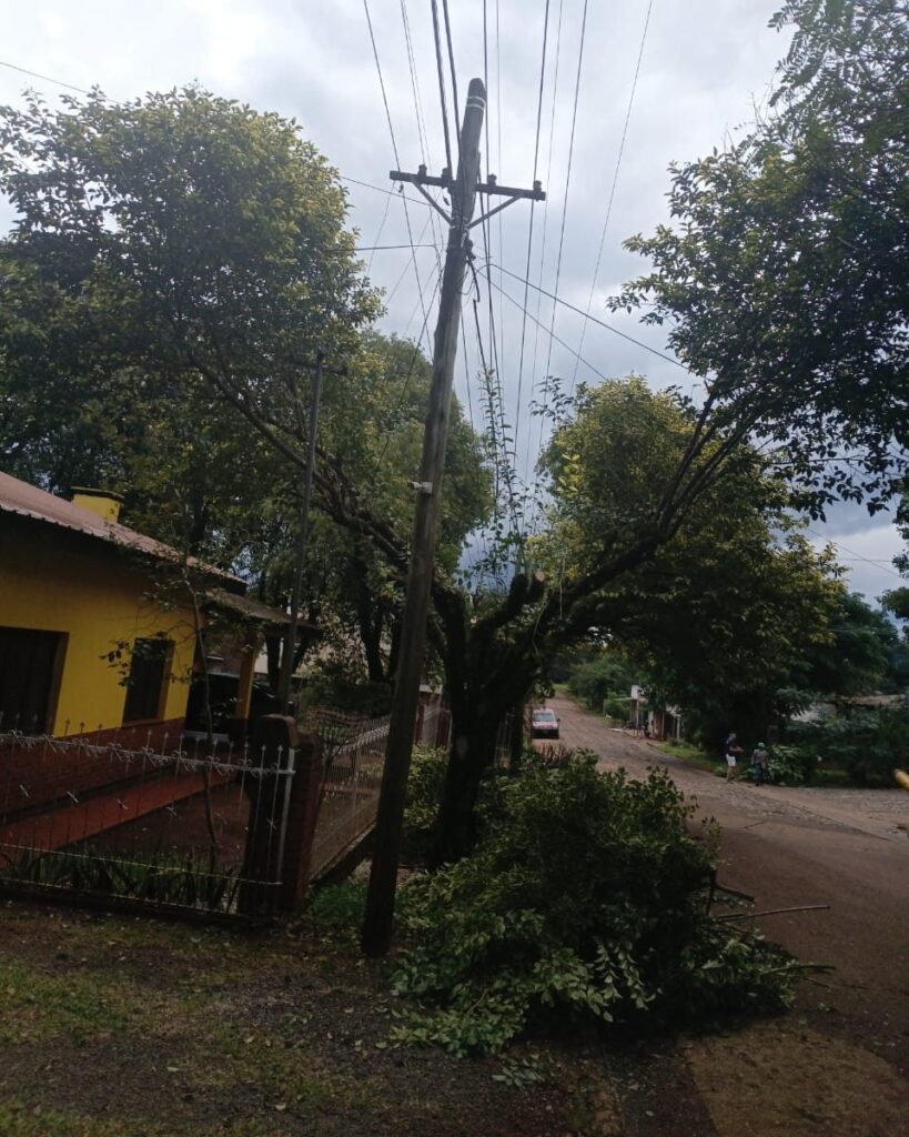 Este martes, el sector de poda de la Cooperativa Cainguás realizó importantes trabajos de limpieza de líneas eléctricas sobre la calle Mariano Moreno de Aristóbulo del Valle.